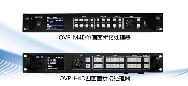 相繼推出OVP-M4D單畫面拼接處理器、OVP-H4D四畫面拼接處理器,實現130萬~260萬~520萬~1040萬四檔視頻處理設備的全線覆蓋。其中OVP-M4D支持U盤播放,2路DVI輸出520萬點,應用于單信號源小間距LED屏時,相比常規拼接處理設備為用戶節省了金額可觀的成本。