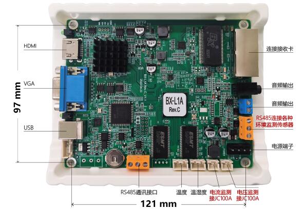 BX-L1A是一款板卡型的視頻控制器。板載HDMI輸入接口和VGA輸入接口,其功能和性能指標相當于OVP-L1X,方便在LED顯示屏內(狹小空間范圍)與各種安卓盒子、智慧網關、工業主板等配套應用。