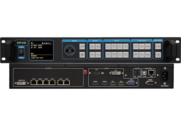 OVP-H3X 是面向LED大屏幕顯示、演出租賃、會議室、演播室等市場的高端視頻處理設備。支持2/3/4畫面顯示和任意布局,支持4Kx2K@60Hz圖像處理和拼接。設備集成6千兆網口大發送,支持4K點對點輸出,支持LED顯示屏的遠程維護。