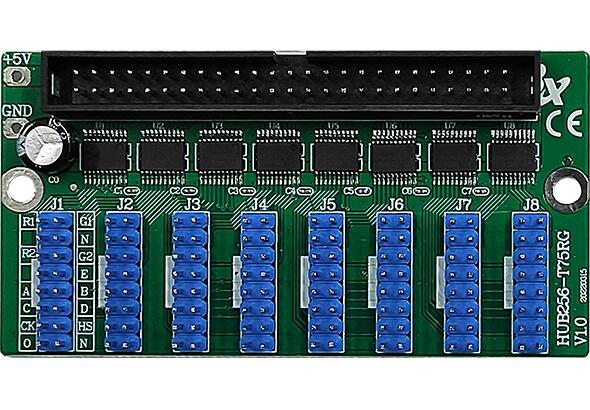 在制作中大面積顯示屏時,建議從電源端引線對HUB板直接供電,以充分保障HUB板的輸出信號質量。對于超長LED顯示屏的信號級聯能力將大有好處!
