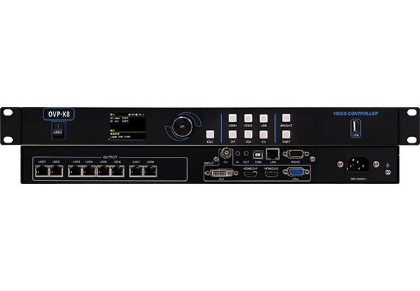 OVP-K8設備集成8千兆網口大發送,支持4K點對點輸出,支持LED顯示屏的遠程維護。支持U盤播放功能。