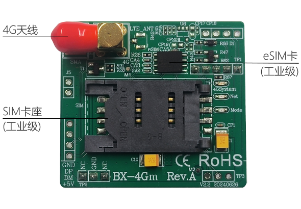 BX-4Gm Rev.A 模塊以LTE Cat1網絡為傳輸媒介,是一款基于移動GSM短消息平臺和LTE數據業務的工業級通訊終端。